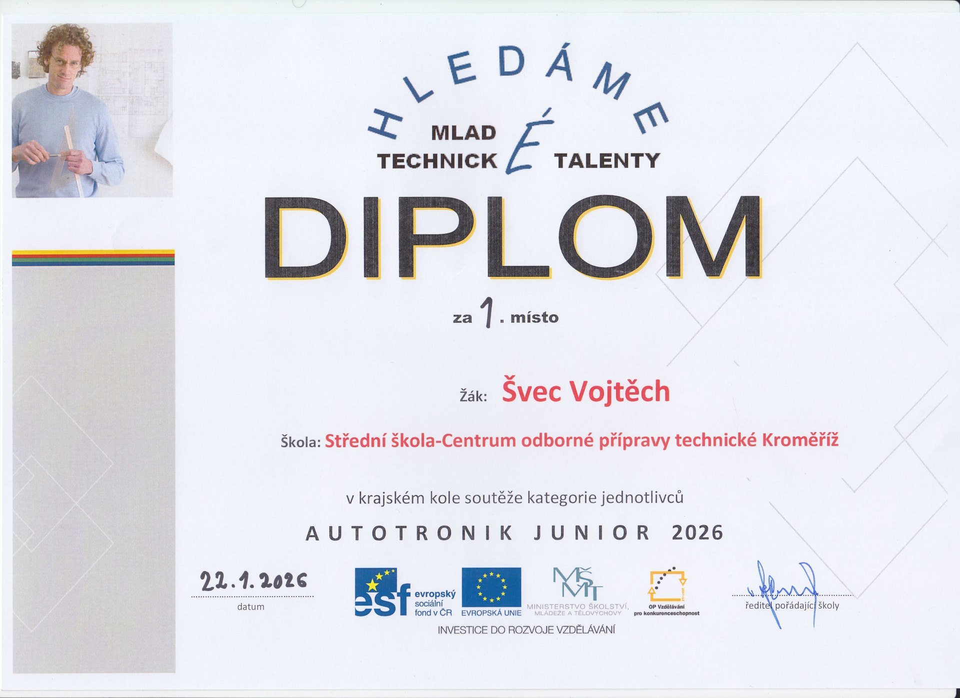 Dne 22. ledna 2026 proběhlo krajské kolo soutěže Autoopravář junior v kategorii AUTOTRONIK v areálu Školicího střediska ŠKODA-Kroměříž. Organizaci soutěže zajistila pilotní škola zlínského kraje pro automobilní obory SŠ-COPT Kroměříž.