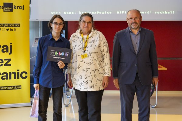 Vítězové krajského kola středoškolské soutěže Haxagon Skirmish Czech Republic 2026 v IT a kybernetické bezpečnosti si v Baťově mrakodrapu ve Zlíně převzali ocenění z rukou radní Zlínského kraje pro oblast školství Jindry Mikuláštíkové. Z naší školy byl oceněn Vojtěch Mezuliáník ze třídy MS3.